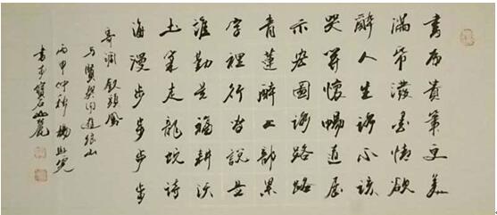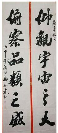秦观词:鹊桥仙 创作年代:2014年 尺寸:140x70cm 书山颂华 夏砚海藏百家(竖幅、对联形式书写)创作年代:2016年 尺寸:140x70cm |