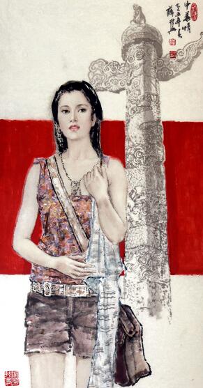 静心 艺术成就: 一.穿越中西 薛林兴勇于创新的画家,对传统绘画既敬畏又大胆突破,广泛吸纳西方绘画元素,把握时代审美意识,创造出完全超出于他人的女性人物画风格。薛林兴水墨人物画的造型借用了油画细腻入微的表现力,明暗过度,冷暖变幻 ,高光反光的运用使形象即惟妙惟肖,又生动感人。将色彩融进了他的人物画。红色的热情,绿色的生命,蓝色的冷静,黄色的明暗,紫色的神秘,白色的纯洁…每种颜色都以各自不同的性情 任何墨色都无法比拟的渲染情绪的诱惑力和美感。而色彩之中的色相、冷暖、纯度、明度、调和之美更是如魔幻的魔力,梦幻的境界。 他颠覆了齐白石‘太似为媚俗’,潘天寿的‘中西绘画要拉开距离’和传统的‘水墨为上’的绘画理论。采取写意与写实相结合,色彩与水墨相结合的手法,穿越中西,中西交融 。将东方的神韵美,古希腊的人体美,古印度的性感美,三大艺术体系合为一体,在中国人物画坛独树一帜,成为新仕女画派的创始人。
