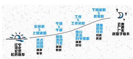 从阅读时间上来看,辽宁、河北、北京地区的用户起得最早,云南、广西、广东则夜猫子最多。