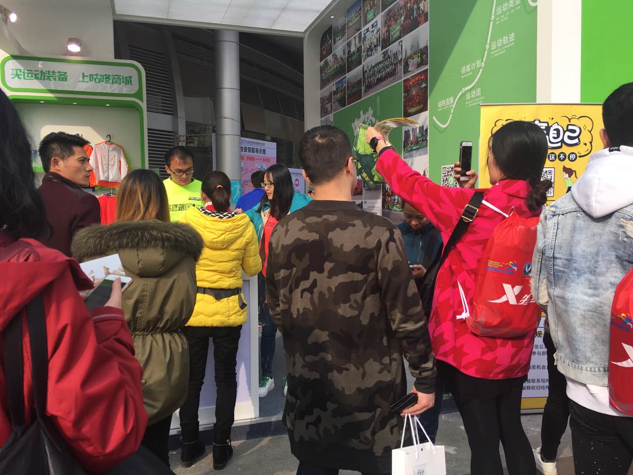 最独特的是咕咚展台的风景墙——以“咕咚英雄会”为主题的风景墙,通过征集筛选,向众多跑友真实展示了2014年以来,咕咚跑团、运动团建设的成果。据咕咚跑团负责人介绍,目前入驻咕咚的“运动团”数量已超过17.6万个,覆盖运动人口超过千万。 其中,咕咚跑团数量超过10万,骑行团数量超过3万,通过官方认证的“咕咚官方跑团”108个,以广州、上海、北京、成都、杭州、深圳、重庆、郑州、大连等一二线城市最为活跃,成员超过13万。每年线上线下开展的跑步活动超过千场,推动健康、快乐、积极向上的运动社交理念迅速走向成熟。