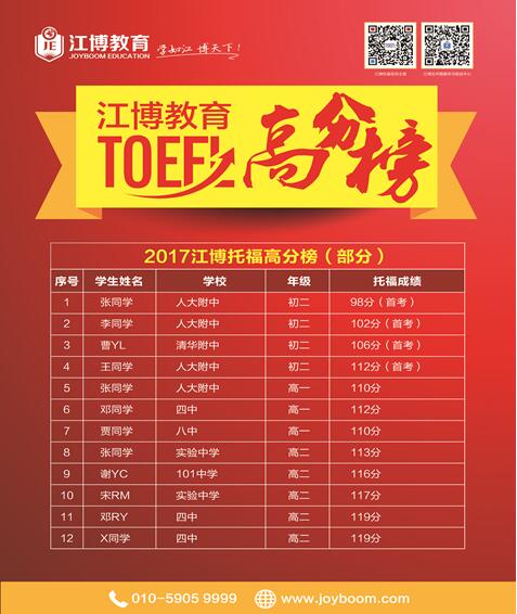 随着两会的顺利闭幕,教育作为民生问题也受到了公众的广泛关注。有关高考改革问题、义务教育年限问题、出国留学问题、幼儿园以及幼儿入学问题、学区房问题、校园欺凌问题、“双一流”建设问题等等,都是两会上热烈讨论的议题。而两会结束后,这些问题的解决会不会有一个实质性的推进?未来整体教育走向将会如何?都是两会之外我们始终应该重视的问题。 据教育部部长陈宝生表示道:建设教育的双一流,既要建设一流大学,又要建设一流学科,双一流的定性就是“中国特色,世界一流”,双一流的标准即是中国特色和世界一流的有机融合,是在“985和211”的基础之上,把建设世界一流大学的事业在新历史潮流下推向前进。这段话给了我们很多启示。在全球化进程加快的今天,世界各地的融合更加紧密,我们的确有必要以世界标准来衡量我们教育的方方面面。而英语学科在我们中小学生的教育当中一直处在一个至关重要的位置,怎样推进我国英语教育的国际化,如何建设中小学生一流的英语教育水准,甚至提高大学生的英语能力,都值得我们去深思和不断为之努力。 而在一流教育的路途上,永远不乏一批为了提高教育水准的仁人志士们身先士卒,为建设我国一流教育而奋斗,江博教育便是致力于教育事业的一份子。在江博汇聚了一批优秀负责的英语教育专家,开创了少儿到高中再到留学的一站式教学服务模式,培养了大批的优秀学子。 出国留学一直是我国教育问题当中一个不容忽视的议题,也有越来越多的年轻人怀揣着出国梦,而想要顺利的出国求学,首先要过的一大难关就是语言,这其中少不了众多学子常为之头疼的托福考试。托福是一种国际英语水平测试,今年随着我国教育格局的开放以及中国家庭经济环境的提升,越来越多的家庭希望让孩子去美国、加拿大等地接受更加多样化的教育。 江博教育立身于多年的教学经验,特开设了众多颇有针对性的课程。精品课程根据不同年龄阶层、不同能力基础的人群精准设置,采取分步走的战略,以更加创新有效的形式助力广大学员通过托福考试。这其中包括针对托福考试的各个板块开设细分化定位的课程:口语班、写作班、听力班、阅读班等,使学员能够更有针对性的解决自身的短板问题。真实的数据足以说明江博的大批老学员都取得了理想的成绩!