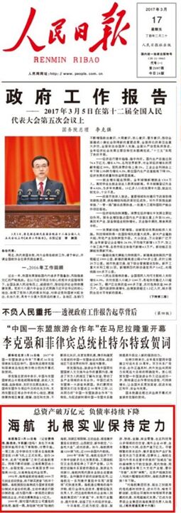 3月17日,《人民日报》采用“1+1”版面联动的形式,聚焦海航创业24年以来的发展历程。在头版刊发的《海航 扎根实业保持定力》中指出,持续不断的创新,让海航集团2016年高居世界500强第353位,从海南岛走向全世界。