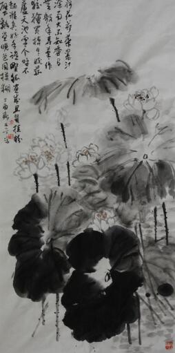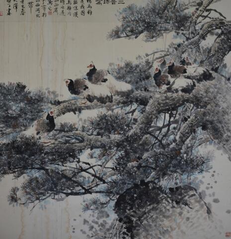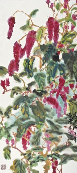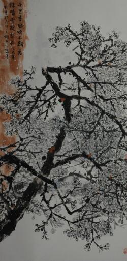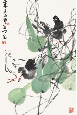 他的诸多作品,既是写自然情态,更是表达自家心底坦荡、乐观、朴实而多情的生命张力与人生情性。在用色上,他大胆地以色代墨,墨色交织,巧妙地用水,水墨淋漓,加之取景构图高度繁密,这就使墨、色、水的所有趣味形式都被发挥到痛快淋漓,因而构筑了色墨浑融而明丽清新、厚润丰茂而典雅沉着的视觉冲击力,充实和强化了博雅壮观的意境,给生机勃勃的自然生命增添了无穷的烂漫与情致,事半功倍地彰显出作品独特的艺术魅力。