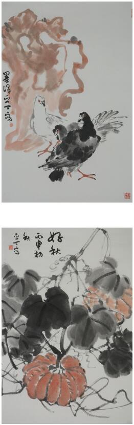 注重写生,激活花鸟原始生机。坚持写生是乔亚丁一直以来非常明确的艺术主张,将写生看得如同吃饭和走路一样必要和自然。他认为,大自然为艺术家们提供了永不重复的结构和烂漫鲜活的情绪,通过实地写生,可以强化对物象的认知与把握,可以切实体会和领悟前人的表达技巧。在写生时,他不走马观花,也不借助照相机,都是直接对物写生,迅笔捕捉,乘热打铁。在他看来,大自然的生动与神秘,只有在身临其境与其拥抱、对话时现场动笔,才有可能捕捉其一二。“随着写生的深入,你会发现前人提供的技法是远远不够的,就会促使你不断去钻研,融创,探索出一些新的方法和手段,丰富自己的艺术语言。”通过写生,使乔亚丁无论从内容、题材,还是表现手法上,不断拓展、提纯,逐渐丰满。更重要的是,通过写生,他大大激活了自然物象的原始活力与生机,使画面辐射出一种鲜活欲滴的自然气息与笔墨生趣,你看他画的醋溜溜、串串红、大南瓜、西红柿、野菊花等等,与那些书斋临摹之作的味道显然不同,我们似乎能从画面中读出露珠、山风、阳光,以及村姑们带着甜味儿的民歌。