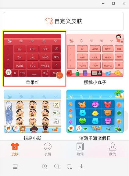 换上红色新皮肤,与周围小伙伴的手机页面迅速区分开,成为周围最耀眼的一抹红!想必大家已经迫不及待的想要更换皮肤了。启用的方式非常简单。现在只要打开搜狗输入法手机版,首页已经显示了“苹果红”的新键盘,轻轻一点,就会出现“立即启用”字样,再点击“启用”就大功告成。