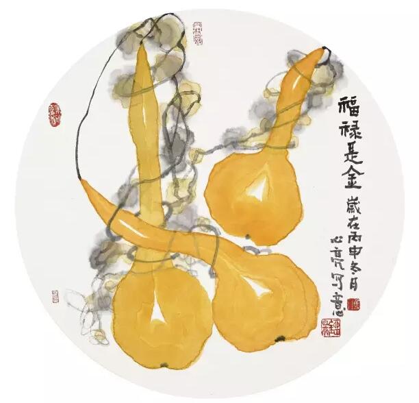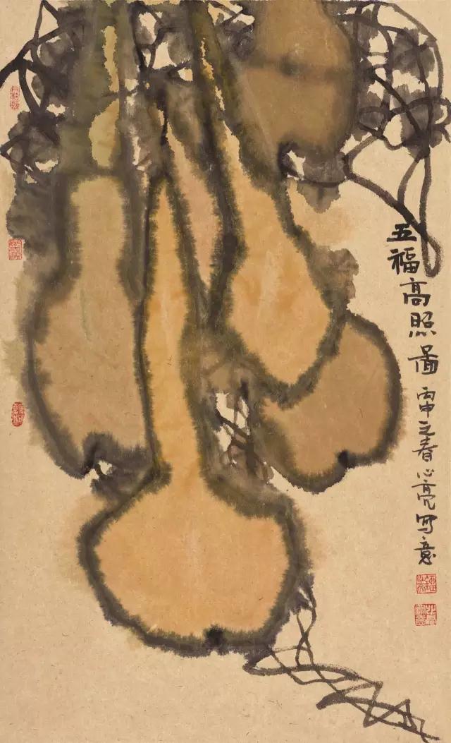 秋意浓 75x46cm 2013年 刘心亮 五福高照图 76x47cm 2016年 刘心亮 |