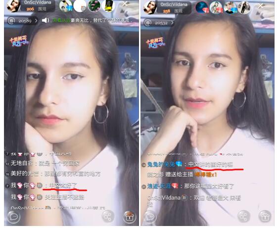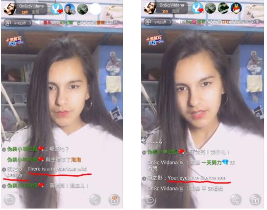 说完了中文,土耳其语,辣么问题来了,主播你会说英语吗?OnSc笑而不语,肯定会呀。于是有才的小伙伴开始用英语夸赞她,只为在一大票围观者中能顺利引起主播的注意。好吧,你赢了!
