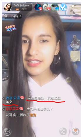 这时,一名挑事的围观群众,开始批判土耳其是个很穷的国家,一点都比不上中国。正当主播一脸迷茫懵逼的时候,其他小伙伴纷纷出来解围,说每个国家都有穷和富的地方,不能一概而论如此片面地看待这个问题。OnSc也很赞同这个看法,说自己觉得土耳其也是一个很美好的国家,和中国一样,值得你去看一看那边美好的风光。万万没想到,在压寨这小小的直播间,竟然变成了中土两方的友好见面会。