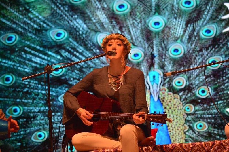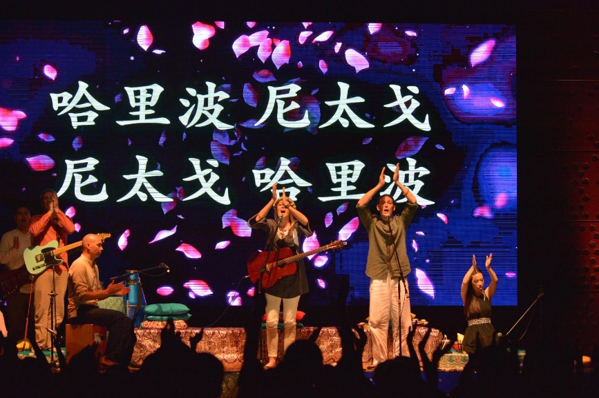 在金阳精彩开幕后,聚光灯随之落向善纳坦,他天籁般的瑜伽语音诵唱配以细腻柔缓的中国二胡音色,深深地震撼了观众的心灵。随后,聚光灯转向置身于银色湖畔风光背景之中的夏玛丽。随着月亮缓缓升起,一轮金色的光辉撒在湖面以及观众之中,她天使般的歌声,柔滑如丝的嗓音与歌词奇妙地融为一体,犹如仙乐般的悦耳之音带给人们内在纯粹的喜悦。夏玛丽邀请观众们与她一同歌唱,现场的观众们热情回应。