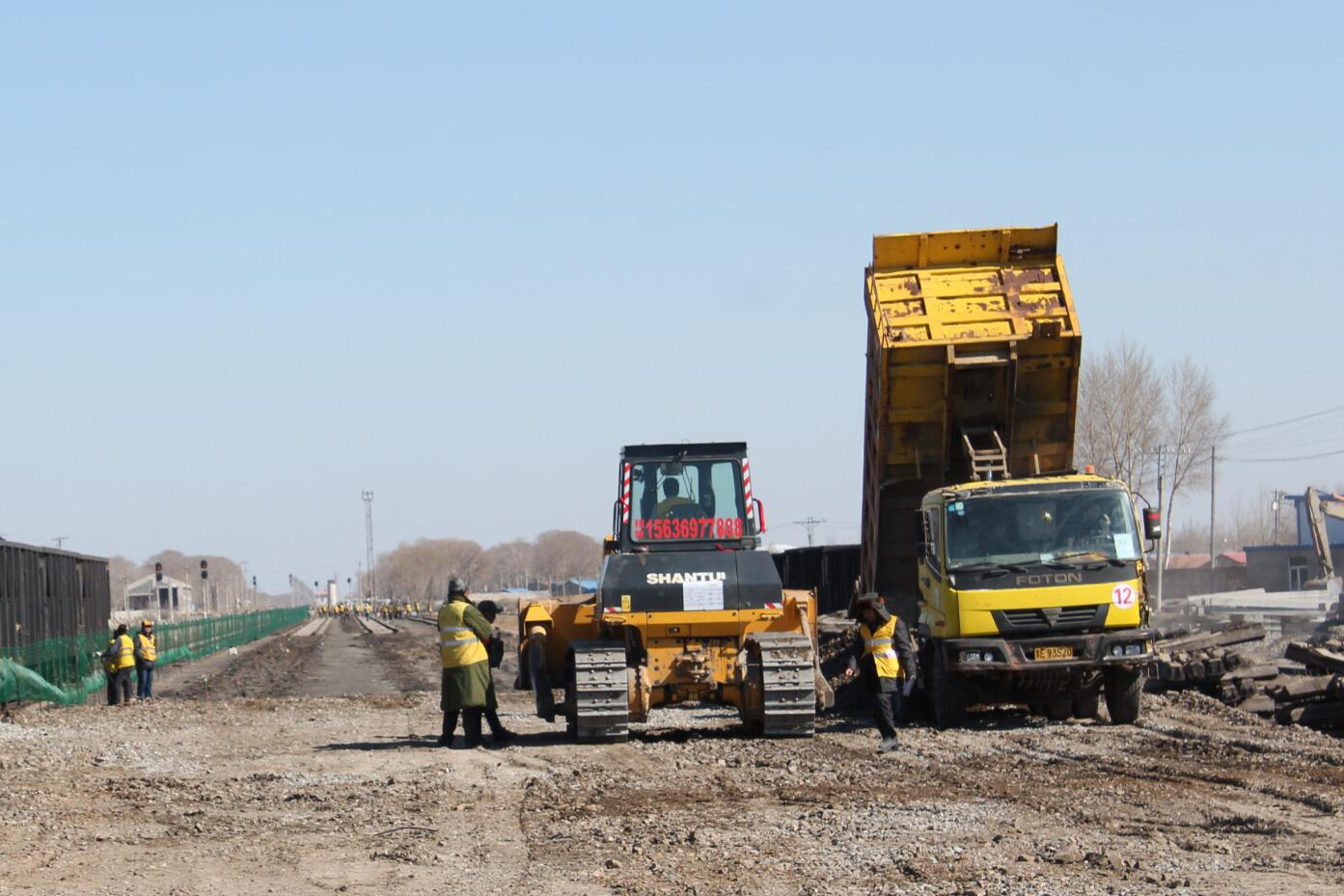 四月的松嫩大地冰融雪消,万物复苏。由中铁二十局第四工程有限工程承建的通让铁路项目站改工程全面展开,其中新华屯站、创业站、林源站三个站改施工同步进行。施工节奏快而稳,日产值不断突破,现场作业紧张有序,为实现“7.30全线开通”施工目标进入“快车道”阶段。