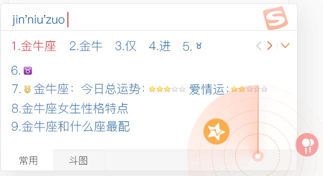 (图四) 除了拥抱 “图文化”,智慧版3.0还试图给网络文化中新兴的流派“信息党”加个技能。“信息党”在星座圈中尤为吃香。10年前当星座达人只需要熟知各个星座的时间和基本特征,5年前当星座达人需要通晓星盘,上升太阳月亮随口到来,但现在想当星座达人,仅仅通晓星盘已经不够了,还要获取足够多的实时信息,比如今日总运势如何,爱情运、事业运分别怎么样。而在智慧版3.0中,只要你输入星座名称,比如“金牛座”,输入法会自动展开和该星座有关的各类即时信息。搜狗输入法通过这种方式提供了让每个人都能变身“信息党”的平台,在这个“信息即是社交资本”的时代,智慧版3.0让你更好的融入各种圈子,玩转各类亚文化。(图五)