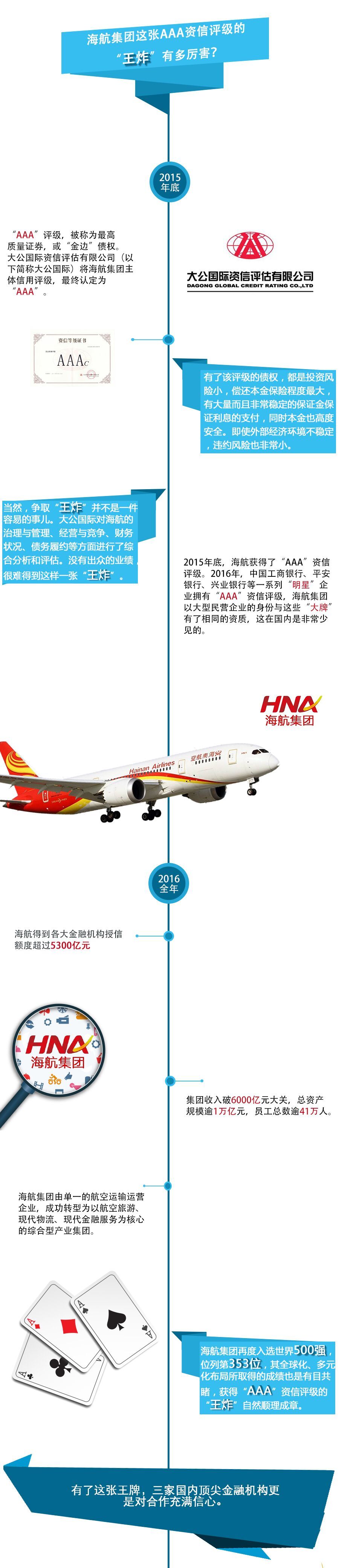 1000亿元是怎样的量级?它相当于BAT级别的互联网巨头2016财年的全部收入,它也相当于海航集团在10天之内从顶尖金融机构获得的授信额度——一个是一年,一个是10天,海航是如何做到的呢?讲真,海航能够做到这一切,与2015年底获得AAA资信评级有关。这一张“王炸”有多大威力?看过下面这张图你就“秒懂“了。
