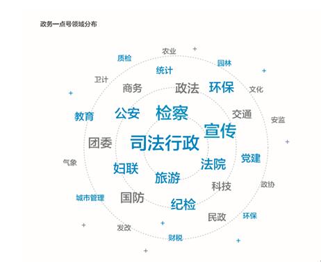 从领域分布情况来看,目前政务一点号已经覆盖所有政务领域,其中,政法系统(包括政法委、公安、检察、司法行政)和宣传部门借助庞大的入驻数量和良好传播效果,不断拉近民众与法制指尖的距离。 此外,一点资讯还推出了政务一点号传播影响力评估体系“一点指数”,从传播、互动、受众、权威、规模、服务、成长7个维度对2016年度政务一点号的运营情况进行排名。