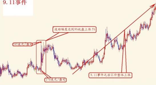 同时任衡还举例说明,911事件让当时美国民众担忧情绪蔓延,国际资本对对于美国市场的信心不足,催发了市场对黄金的避险需求升温,从而诱发了黄金价格瞬间飙升的态势。为了刺激当时低迷的经济,防止恐怖袭击带来衰退,美国连续17次降息,在长达两年多的时间里一直保持1%的低利率,持续实行宽松的货币政策,造成国际流通的美元过剩,美元从此踏入10年熊途,而黄金则成就了10年牛市,并在2008年首次开启四位数时代。