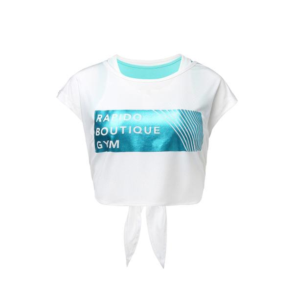 2017春夏秀场刮起的“标语“风已经蔓延到一众时尚达人的衣柜里了。让普通的T恤更有态度,沉默地传递你的观点,张扬你的个性。 RAPIDO露脐长度背心款上衣,前胸印有Boutique Gym系列logo,背部不但可以打结穿着,还可以在里面搭配运动胸衣穿着, 让你更具活力和女人味。 除去类型纷繁的短款上衣,RAPIDO 更应用创意设计将传统t恤改头换面成时髦的宽松上衣,前身下摆打结设计,结合柔和的印花配色,女人味十足。