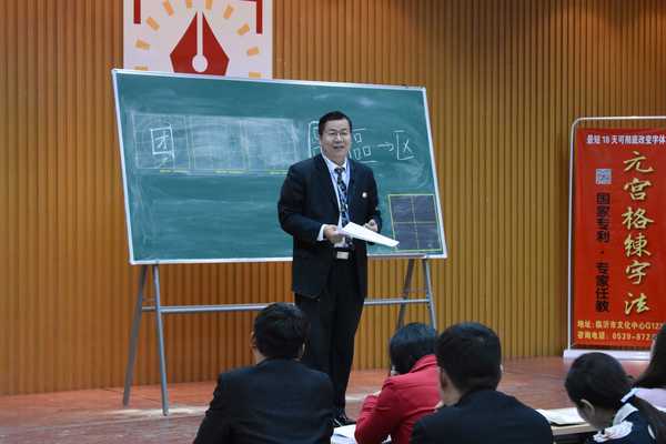 站在讲台上的王恺教授 在当今快节奏的社会里,电脑、智能手机等科技产品渐渐取代了我们纸和笔的书写,写一手好字渐渐成了难上加难的一件事。 由此市面上出现了很多“五天练字”“2周练就一手好字“等鱼龙混杂的练习书法的所谓教育培训课程,而很多人学习了之后也很难达到理想的效果!这些所谓的练字法受到了人们的质疑和不认可。 2016年,在王羲之故里、书法之城山东临沂,由王氏后裔王恺教授历时八年之久潜心研究的国家专利“中国元宫格练字法“诞生了,这个神奇练字法的诞生,为国人汉字书写窘境带来了新的希望,仅用短短的18天就能神奇的练就一手好字。元宫格练字法凭借其独有的核心理论及独特的魅力,仅用了10个月就在全国开设了679家分校,18天为一期,峰值时达到了两万多人次!又一次创造了中国教育培训发展的传奇!