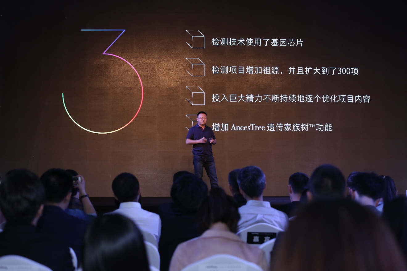 (发布会现场) 23魔方于4月26日在北京发布了新一代基因检测产品。该产品采用与赛默飞旗下的Applied Biosystems Axiom 基因芯片(原Affymetrix品牌)联合定制的芯片:它拥有70多万检测位点,是目前国内检测数量最多的基因芯片——这意味着用户只需要提供2mL唾液样本,就可以得到70多万个位点的检测,最终生成包涵祖源信息、遗传风险、体质特征等内容的300多项检测结果,以帮助用户全方位了解自身基因的内涵。