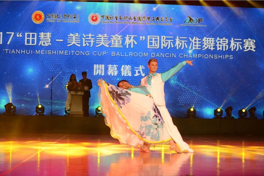 在当天的开幕式上,主办方还邀请了世界国标舞界的顶级选手前来助阵。包括来自美国的摩登舞冠军Andrey Belov和他的学生Nina C Paris,以及来自意大利世界职业拉丁舞第二名的Stefano Di Filippo 和 Daria Chesnokova,他们的精彩表演赢来了阵阵掌声,也让中国的参赛者有了近距离学习的机会。对于中国孩子们在比赛中的表现,这些世界巨星也给出了很高的评价。他们认为此次比赛不管是从组织规模,还是现场的气氛,都非常完美,他们也希望今后有机会能经常参加中国社会艺术协会的此类活动。这些国际巨星也认为,这些参赛的中国小选手非常有潜质,希望他们能继续进步,今后在世界的舞台上获得越来越好的成绩。 当晚开幕式上,恰逢主办方社会艺术协会国标舞委员会创始人付中枢老先生88岁生日,他致力于国际标准舞引进中国的事业30余年。付会长女儿也在美国从事国标舞教练工作几十年,特地为庆祝父亲寿辰,更为庆祝大赛的举办,与外国舞伴以中国经典原创音乐《梁祝》为主题背景,用西方国标舞的艺术方式诠释了中国美丽凄婉的爱情故事。中西元素结合的舞蹈,另现场观众惊艳不已掌声四起。据记者从主办方中国社会艺术协会了解到,此项赛事已经连续举办11年,形成了北京地区的标志性赛事,具有了一定的品牌效应。中国有8000多万人从事国标舞这一事业,关注群体更是达到了几亿人,包括现在的青少年宫、高等院校,如北京舞蹈学院都有国际标准舞专业,2007年北京,只有几家拉丁舞青少年学校开办,到2016,近十年来开办拉丁舞培训的机构每年按上百所递增。