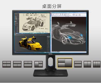 3.内置分屏软件 设计师工作时要同时操作多种软件,27寸的明基PD2700Q借助自带的BenQ Display Pilot软件,可以实现不同任务窗口并列显示,以实现便捷的多任务处理。