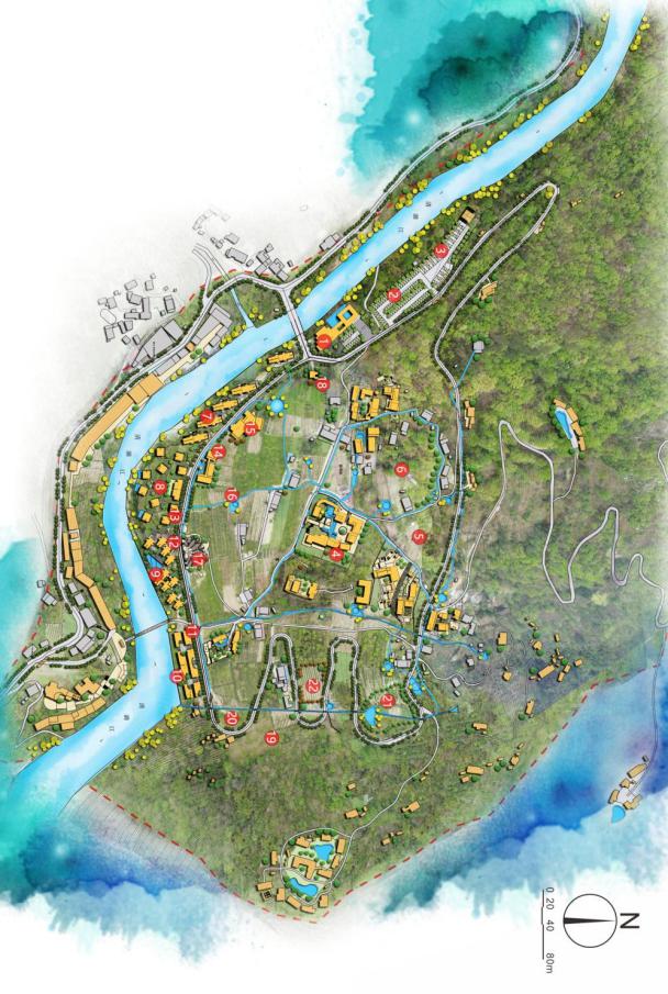 小镇规划 平武禅茶小镇,项目总建筑面积约12000平方米,项目设计规划分区包括: 1、游客服务中心与茶博馆主题会所 2、生态停车场 3、自驾车旅游营地 4、十二家主题精品民宿 5、生态亲子主题乐园 6、茶主题大型情景探险寻宝旅游区 7、竹林·君舍 8、茶园·秘境 9、吊桥·人家 10、倚山·别院 11、原乡书院 12、原乡市集 13、茶园婚尚会所 14、DIY文创教室 15、宋韵 16、禅茶田地 17、禅茶主题广场 18、问茶亭 19、绿色有机茶叶种植示范区 20、茶科植物科普教育园 21、茶树认领园 22、茶海迷宫