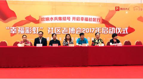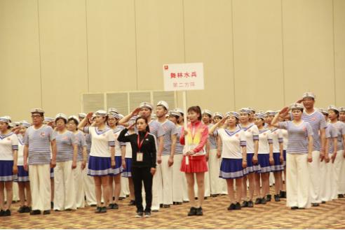 5月13日上午9:00,九华山庄17号宴会厅,在一段激情热舞中, “幸福彩虹”社区老博会2017年启动仪式拉开了帷幕,此次活动以“吹响水兵集结号,开启幸福社区行”为主题。以养老为老服务为核心,旨在丰富社区老人的业余生活,提升生活质量。 参加开幕式的有市体育局群体处副处长朱宏、北京市社区服务协会项目管理部部长王卫、幸福社区董事长董春日、舞林盟主董事长马凤侠、舞林大汇CEO赵兴斌,以及500多名水兵舞队友。