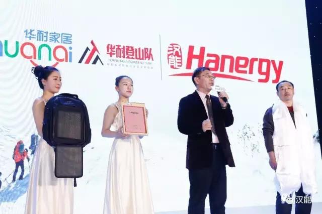 为了确保华耐登山队能在珠峰高海拔的地方有持续的电力保障,汉能薄膜发电集团给华耐登山队赞助了被称为登山神器的15W发电纸和技术领先的便携式太阳能发电背包。在华耐家居攀登珠峰启动盛典仪式上,汉能薄膜发电集团电商事业部领导全面介绍了汉能发电纸以及发电包的功能特性,由于汉能采用了独特的封装工艺,不仅可以确保发电纸耐剐蹭,寿命长,同时能够发挥薄膜太阳能轻柔特点,不至于增添登山队员太多的背负重量。
