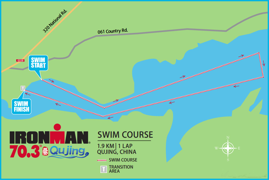 IRONMAN官方游泳赛道图 曲靖站游泳项目将在面店水库中进行,该水库是曲靖城区的饮用水来源地,水质清澈、景色宜人,是当地许多游泳爱好者青睐的天然泳池。巴斯也对水库的水质赞不绝口,他笑称:这是我经历过的国内赛事中水质最好的赛道,在这里比赛非常舒适。 水库相比其他赛事的水域,很好地减弱了波涛、洋流等外在因素对选手的影响。巴斯举例说:“厦门站属于开放水域,选手受洋流的影响很大;而合肥站的比赛,水温非常低,对选手的发挥都有很大影响。这里海拔较高(面店水库的整体海拔超过2000米),有的人可能会有较大的高原反应。像我跟党琦在游泳的时候状态特别好,小美就明显感觉不太舒服。”