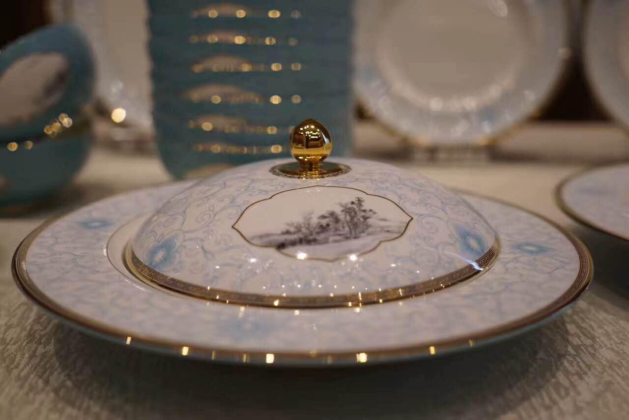 “丝路国宴”餐瓷一览 “一带一路”国际合作高峰论坛是我国尤为重要的主场外交活动,是盛事也是喜事。摆在国际重量级嘉宾面前的国宴餐瓷,所传达的寓意相当重要。“丝路国宴”主创人员介绍,这套餐瓷的主要装饰花纹为盛于隋唐时期的“宝相花”,传达了吉祥、美满之意;辅助图案为“唐草纹” 和“海浪纹”,呼应的是陆上海上丝绸之路的概念;器型显著位置选用的“富春山居图”,则展现了中国传统的山水艺术文化。为保证国宴用瓷的镜头感、画面感等,“丝路国宴”每件餐瓷都经历从原材料配制、成型、烧成、装饰等60多道工序。