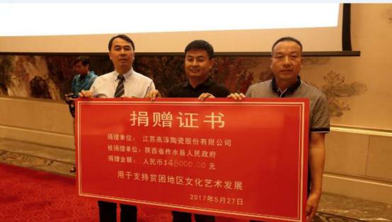 论坛上举行拍卖捐赠仪式 论坛上,高淳陶瓷将数千名职工历时半年之久匠心打造的“一带一路”高峰论坛领导人午宴用瓷38号组进行了现场拍卖,现场5家投资公司进行了竞拍,最终,这套美轮美奂的餐瓷以148000元价格竞拍成功。拍卖所得全部用于资助南京市扶贫对接地区陕西省柞水县文化艺术发展。论坛上,江苏高淳陶瓷股份有限公司党委副书记、公司副总经理周玉明向陕西省柞水县领导赠捐了现场拍卖所得。 “本次论坛的拍卖环节可代表我们一个小小的愿景,高淳陶瓷发展至今,本应不忘初心,回馈社会,同时,高淳陶瓷不仅仅是一家企业,更是一个文化产业功能区,为推广、弘扬陶瓷文化,高淳陶瓷从2007年开始投资上亿元,创建了高淳陶瓷文化创意产业园,园区被授予中国陶瓷文化创意产业示范基地,也是江苏省文艺家创作基地和南京市文化产业园。此次拍卖所得款我们将全部捐赠给陕西省柞水县,希望能为该县的文化产业助一份绵薄之力。”高淳陶瓷董事长孔德双说。 相关链接: 砥砺前行,高淳陶瓷这样“烧”成 古有“丝绸之路”,将中国绸缎、瓷器推向国外;今有“一带一路”,让中国陶瓷再次扬名世界。中国发展史,同时也是一部瓷器发展史,中国瓷器从4200年前诞生,到跟随丝路驼铃声走向世界、受世人推崇,再到十九世纪在西方炮火的攻打下从辉煌顶峰跌落、被欧洲陶瓷赶超,走过了跌宕起伏的数千年。新中国成立后,国人砥砺前行,翘首以盼,期望民族品牌的崛起。2014年,APEC国宴用瓷横空出世,惊艳了世界,也让高淳陶瓷这个成立于1958年的老企业聚焦在国人的视野之中。