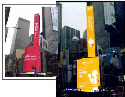 这是海航集团(HNA Group) 在纽约时代广场发起的为期两周的互动公益广告,旨在支持联合国世界粮食计划署(WFP),呼吁更多人关注贫困地区儿童的生存和教育问题,并运用移动互联科技激发人们与互外广告进行互动,参与到海航发起的公益活动中,为贫困地区学龄前女童贡献爱的力量。