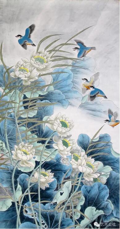 刘西林深知,中国工笔花鸟画如果不先从传统中汲取营养,信笔所至,那就是“野狐禅”,越是勤奋越是南辕北辄;假如死守传统,视先贤法度为牢不可破,那是没有创见的奴性所为,那是没有出息的画家在古人残羹剩饭中讨生活的惰性表现,因此他大量地临摹了古代优秀的工笔花鸟作品。工笔花鸟画自两宋已臻精丽,元明为大雅之正朔,至近现代工笔画又有长足进展,可谓旧题新典。诸如于非闇、陈之佛、张大千、何家英等诸贤俊彦都是他法乳之资,且不囿于此,凡有营养,尽管拿来为我所用,除了传统中的三矾九染之外,不仅吸收了南方画派的撞水撞粉,并且融合了山水画的某些皴擦,还有清末恽南田的没骨法,其倩华淡约,俊润秀逸,就巧妙地被其吸收在他的工笔花鸟画里。