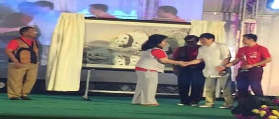 作品并被马来西亚国家画廊收藏。2015年9月8日马来西亚国家动物园及大马邮政局推出由刘进全绘画的“兴兴”与“靓靓”明信片和附有编号的邮票限量一万套,极具收藏价值。也是历史性的第一次马来西亚专门为这位中国熊猫画家出的具有代表性的明信片。同期接受中央电视台采访并在朝闻天下播出。 2015年9月16平尺作品由中国驻马来西亚大使馆收藏。(右图二为驻马大使黄慧康)