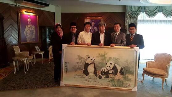 2016年,中国及马来西亚历史上第一位中国画家被邀请进皇官,作品还被收入馬来西亚雪兰莪皇官收藏(下图右三为馬来西亚雪兰莪苏丹沙拉胡丁阿都阿兹沙)