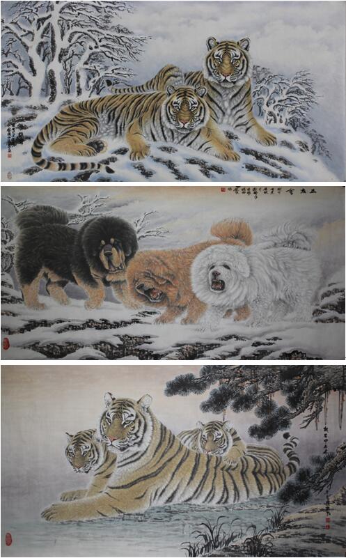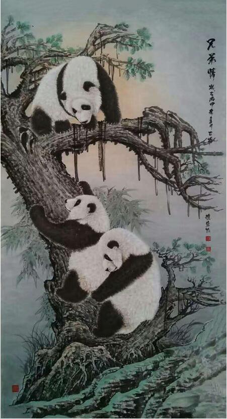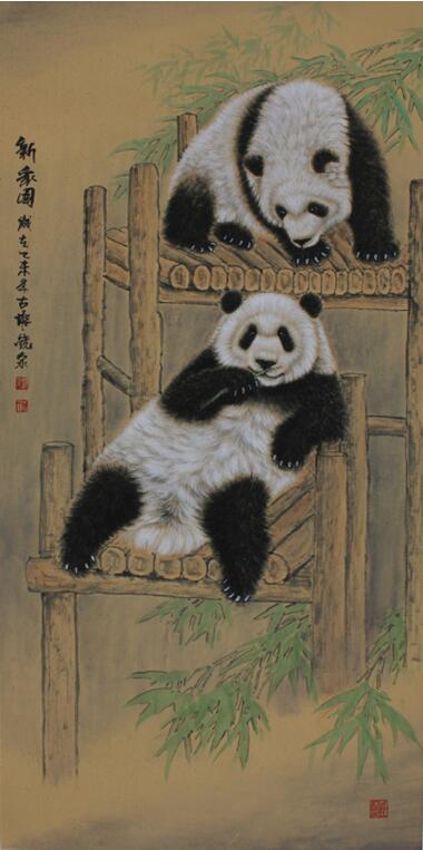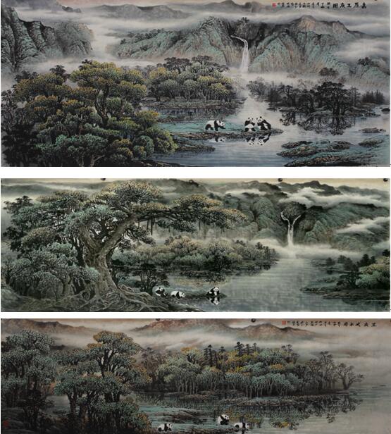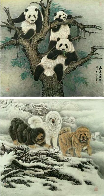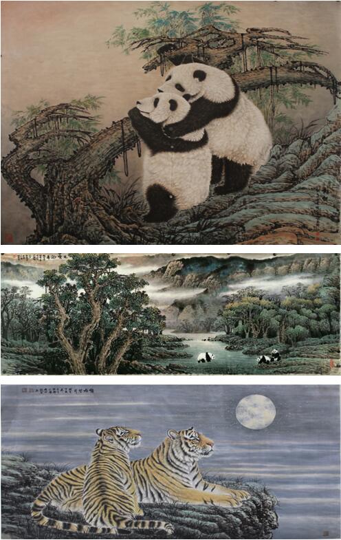 镜泉先生学画四十余载,首先着力于写意山水画的创作,从开始实实在在的用笔,不断的复加和重叠渲染出真实的自然之美,到后来,先生把自己对大自然的感悟不露痕迹的展现在山水画作之中,达到虚中求实的效果。逐渐地,镜泉先生将他在中国写意山水画上悟到的精气神,融入到工笔画虎中去,通过在意境的塑造上得心应手,把虎的意境展现得淋漓尽致,这一过程中,先生笔下的虎虽没有夸张的线条,肆意泼放的墨色,然而在宁静中透着一股蓄势待发的劲头,祥和的神态却又溢出一股王者风范,其意境的塑造胜过浮华的外表。先生笔下的虎在继承前人优秀传统的同时又不失创新,他把现代画虎的成熟技法与古代画虎之精粹完美结合在一起,将虎的“骨气”刻画得形神兼备。 近年来,先生醉心于工笔熊猫的创作,自在都江堰市区发现熊猫的那一刻起,先生无时无刻不在钻研、揣摩熊猫的吃、喝、玩、乐、摸、爬、滚、打的各种神态动作,模拟熊猫所有的行为,为此,先生经常吃住在大熊猫的栖息地,了解大熊猫的生活习性、居住环境以及形象特征,从动物园到野外,先生用尽各种办法去和大熊猫做朋友,抓其形,刻其神,占用了先生大把的时间,终于,经过无数个日夜的参悟,不断的总结创新,先生的熊猫画作终于取得了一定的成就,他走出了一条独具个人风格的道路。先生创作的熊猫画的精髓在于遵循“天人合一”这一禅道,赋予熊猫画以深刻的内涵,创造出万物共生、和谐统一的最高境界。正因为如此,先生作品具有了很深层次的审美价值,他的熊猫画作既有工笔画细致入微的刻画,更融入了写意画的意境神韵,将工笔画的“尽其精微”理念,通过“取神得形,以线立形,以形达意”获得神与形体的完美统一,每一幅作品都竭尽全力把大熊猫和大自然融为一体,让整幅画面看起来浑然天成,纵观其画,不过分修饰、不矫揉造作,浑然大气,富有灵性,大自然的巧夺天工与和谐统一尽显于宣纸之上。 学无止境书画无际,难的是如何能够突破,突破固有的模式,突破条条框框,突破自我,达到有即是无、无即是有的物我两忘的境界,古人董源悟道说:“师今人不如师古人,师古人不如师自然,师自然不如师造化”,这就是镜泉先生真实的写照——在斗方之间恣意泼洒笔墨,快意自我,在多姿多彩之中向世人展示生命的所在!