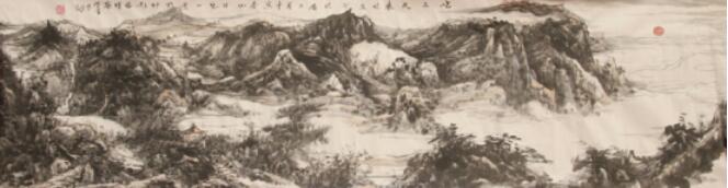 绘画,是从内心流露的艺术表现。山川千奇百秀,人物错综复杂。鸟虫动物与花草树木都有性情,池榭楼台都有严谨的规矩尺度。对以上这些自然人生现象,不能深入了解其本质道理,曲折地辩明社会百态,终究未得到一画所要求达到的洪大规模与范围。行程再远,攀登再高,全部起始于方寸之心。用此心量,能收尽洪蒙之外,即挥写亿万万笔墨,未有不始于这颗心而终止于这颗心。只听任我们自己掌握取舍罢了。学曾先生能对一画具体把握而理解精微,意图明确,笔墨醒透。见其《泰山朝晖图》运笔洒脱,回旋自如,滋润处见宛转,住笔处旷达妥贴,出笔果断如斩钉截铁。入笔处肯定而明确,至于凸凹突兀,断截横斜,如水向深处流动,朝晖向上涌动一样运笔自然生动而无丝毫强行造作,神妙自如而笔法连贯,写情状物无不尽意。在驾驭笔墨得心应手的状态下,信手一挥,所描绘的山川或取其形象用其态势,或写其生动揣其意蕴,运我情愫描摹其影物,或显露或隐含,人不见画成之奥妙,画不违背作者的用心。真心为本源,一画而立。所以我说:学曾先生之作泰山,真一画泰山,先生其人,泰山歌者也。
