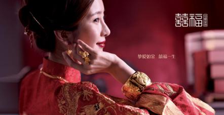新的囍福结婚金饰产品也将目标定位于年轻的婚庆消费群体,在金饰的设计上凸显个性化、时尚化及生活化的演绎,增加金饰的吸引力,从而通过建立黄金饰品与“90后”、“95后”新消费群体的关联性,重新激发他们对黄金饰品的需求渴望。另外,囍福结婚金饰也希望能够引领并唤起消费者重新认识中国传统婚庆文化底蕴,重新审视黄金传统价值。