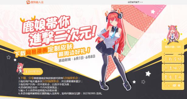 并且,从6月1号到6月8号,只要下载、分享这些独特又精美的漫画定制皮肤,即可获得一次抽奖机会,每位用户每天最多可抽奖12次。奖品也令人垂涎不已,不仅有各种有趣的周边和漫画单行本,更有网易漫画的VIP资格等你领取,海量正版资源正在向你招手! 等等,还没完!这些只是搜狗输入法为二次元的粉丝准备的第一站福利,后续还会有陆续的福利放送,此次活动,搜狗输入法打定主意要献给漫迷们一份暖心大礼!
