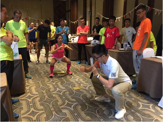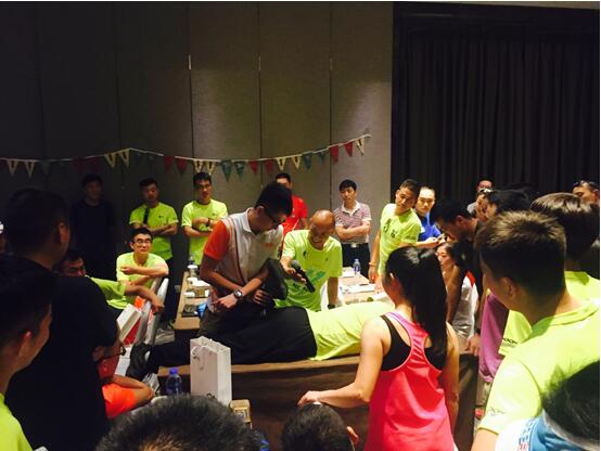 专业指导环节当中,不少跑友争先恐后充当小白鼠,实战运动损伤的应急治疗处置。从脱水到抽筋、从肌肉痉挛到中暑,甚至到高危状态,无论自我救助还是第三方应援,专家讲师David都提供了详细预案,供现场跑团成员反复演练。