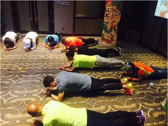 活动现场,到场的跑团成员和跑友们迫不及待地开始了兰州跑马之前的第一场耐力赛——极限平板支撑。跑友以往在赛道上,是互相支持、互相鼓励优先,互相比赛第二,相比之下,极限平板支撑就成了赤裸裸的体能拼杀。刺刀见红的僵持、现场此起彼伏的助威呐喊,将活动气氛直接推到高潮。