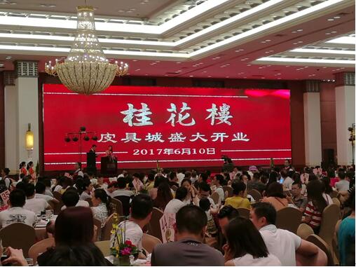 本网讯 2017年6 月10日,桂花楼(原中澳)皮具城举行盛大的开业仪式。 桂花楼(原中澳)皮具城门前,彩旗飘飘,人声鼎沸,锣鼓齐鸣,场面气氛热烈而隆重。各级领导、行业精英、新闻媒体、皮具商户等济济一堂,共同见证了此次开业庆典的盛况。