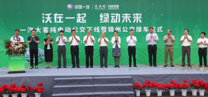 6月23日,中国第一汽车集团公司(以下简称“中国一汽“)与中国沃特玛新能源汽车产业创新联盟(以下简称“创新联盟”)在大连举行“沃在一起 绿动未来”一汽大客纯电动公交下线暨锦州公交接车仪式,双方首批合作量产的120辆纯电动公交车,将正式下线并交付锦州公交。 沃特玛创新联盟常务副理事长唐慧斌、一汽客车公司党委书记齐艳民、沃特玛集团副董事长朱金玲、锦州交通发展集团总经理张杰、一汽集团规划部高级专家刘本义、深圳民富沃能董事长陈林见证了公交的交接仪式。120辆纯电动公交的交付使用,将为东北新能源汽车的推广提供示范效益,助力东北早日实现交通电动化。