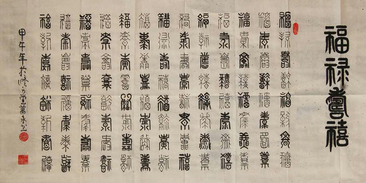 2017年,由全国专业艺术人才评定委员会、全国艺术品评定鉴定中心联合评审,李万永同志提交的国家一级美术师相关艺术品作品申请材料,经严格审核认证程序,已具备相应资质水平,授予李万永同志国家一级美术师职称证书。 精于书道励宏志 传承堂训修其身 ——《李万永书法作品集》 序 徐学胜 在丁酉天中稼禾吐穗、百花争艳的季节,欣闻资深书法家李万永先生历时三载创作编辑的《李万永书法作品集》即将付梓出版,余顿感可喜可贺! 历览琅琊千余年书坛,书圣领军,济济多贤。然以传承修身堂堂训为宗旨,精研书道六十余载,成果丰硕者当属李万永先生也。 书以言志。李万永先生富有才情,1950生于罗庄一书香门第,自幼受其父辈熏陶研练书法。秉承其曾祖父李翔设立《修身堂》之堂训“以俭齐其家、以德修其身、以孝善其尊,以忍壮胸怀。”,饱学《四书五经》,遍临古今经典书法碑帖,远攻王思衍,近学陈允升,求教马国栋。涉猎“真、草、隶、篆、行”五体,独擅隶与篆,乃成自家之面目,世称“万永书风”。 “万永书风”之妙,在于中锋用笔。墨浓线挺、骨力遒劲,结体严谨、循规蹈矩,形神兼备、古朴端庄。若篆作之雅逸,隶作之结密,各造奇妙,时人少有其匹。李公治学,深研书论,喜读古贤赵孟頫著《兰亭十三跋》:“书法以用笔为上,而结字亦须用工。盖结字因时相传,用笔千古不易。”朝夕揣摩笔锋“提按、顿挫、转折、摆动、疾涩、快慢”之规律,结合创作磨炼千万遍,日臻炉火纯青之境。纵观本次入书之百余幅佳作,多为“福、禄、寿、喜”及劝学、励志、敬业、友善等吉祥题材,均鲜明地表现出用笔干净爽利、结字变化丰富、点画精确到位,颇具文人意趣,赏之心旷神怡。现今鲁南地区已形成喜爱“万永书风”的收藏热潮矣。 李公临池之余好读书,于经史子集、诗词歌赋爱不释手,并于文玩杂项、珠宝玉器、雕刻赏石等鉴赏收藏颇丰,足增其字外之功。且能策励后学,故从游之士门庭若集、流连忘返。“修身堂”成为罗庄一大景观。 于今玉版已成,诸师友问序于余。愧吾不才,特草叙文字 如此,挂一漏万,权当学习之心得也。 是为序。 作者系《羲之书画》副主编、书画评论家 二0一七年五月于洗砚池畔泓文馆
