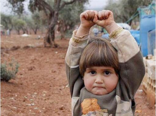 图为巴勒斯坦的摄影记者娜迪亚‧阿布‧沙班(Nadia Abu Shaban)拍摄的一张照片,画面中的孩子(ADI Hudea)把相机当成武器,看到摄影师“瞄准”自己,立刻高举双手投降 |