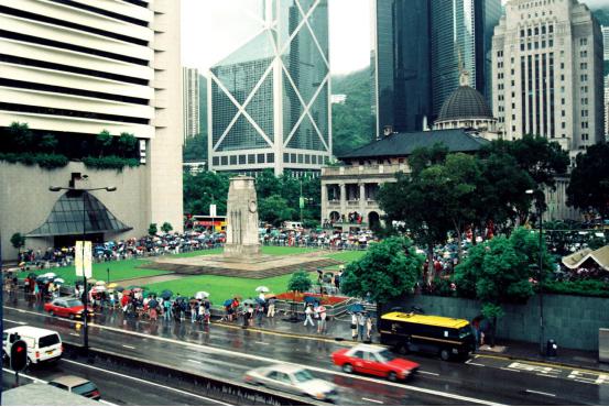 图:观礼团前往香港的通行证 那天的拍摄任务满满的,重重的,沉甸甸的。因为我们知道,自己将成为一个伟大的历史事件的见证人和记录者。作为一名摄影人,还有什么比这更荣耀更兴奋的呢?清楚记得当时整整提前两个小时我们就到了那里站位,占据最佳摄影位子,由于我是自费进入参加香港回归盛典摄影,没有记者证很难进入港督府大院内,我个子也不高,那天下着倾盆大雨,我背着摄影包,拿着相机全身湿透了,成千上万的人一条路上拥挤的水泄不通,想支撑三脚架都很难,我只好靠在栏杆上站着,那个最佳的位置,差点挤出人命。要不是我头一天就探好路和位置,这些都很难抢到好位置。港督府门前本来就不宽敞,一下子来了世界各地的一百多位记者,要抢到一个理想的采访位置其难度可想而知。位置上一站竟达两个多小时,几乎一动也不动。这就是平时练就的硬功夫。但此时此刻却又是在内地不曾遇到过的困难。你都不能打个招呼说离开一步,因为一离开,你就没位可占了。同时,由于大家都挤在一起,有时忽然不知哪来的什么力量把你推搡了一下,一不小心可能控制不住自己倒向别人身上,甚至被挤出去了,整整等待了两个多小时。终于冒雨看到了前面香港检查的摩托车开道,后面两辆高级轿车出来了。这是我人生当中第一次看到劳斯莱斯轿车,车里坐着的就是最后的香港总督彭定康。我就一只脚勾在栏杆上,半个身子探在外面迅速按下快门,这时前方正好有面英国的国旗被人挤得倒向轿车前方下往下倒。终于,彭定康先出现了,看得出他坐在车内是佯作镇静,但怎么微笑都难掩一个殖民者的最后失落感。彭定康是1993年到任的,是香港第28任港督。在任这几年他将香港搞得天翻地覆,特别是他搞的所谓“民主”,执意要将立法局直接过渡到回归后,遭到中方的严正拒绝。在一无所获的情况下退场,他于心不甘,当天整个下午港督府举行降旗仪式,飘扬了155年的殖民者的英国国旗终于降落了,彭定康含泪收拾起旗子后,带着全家上了坐驾离开了港督府。 6月30日,新闻媒体和摄影家这天是如同打仗一样东奔西跑,抢好机位,冒着倾盆大雨,这也彭定康手捧刚刚降下的英国国旗离开港督府,那边皇后象广场也要降英国国旗!天气时而放晴,骄阳猛烈;时而急雨,似箭冲刷。对彭定康来说,是昏暗灰霾,对港人来说,是洗刷百年耻辱。155年前的港督会想到有今天吗?香港在他的手里交回中国,实在是一件很痛苦的事。 那时香港大街小巷纷纷挂起中国国旗和香港特区区旗,香港回归大典在香港新会展中心举行。临近午夜子时,解放军通过深圳文锦渡口岸浩浩荡荡进入香港,沿途受到香港同胞的热烈欢迎。在香港警察开道车的引导下,解放军分秒不差地进驻位于金钟的解放军总部,和英军完成交接,我拍下了最先两名共和国驻港解放军总部的哨兵。与此同时,会展大厅的中华人民共和国国旗在港英旗降下后冉冉升起。中华人民共和国香港特别行政区成立大会正式开始。 1997年6月30 日这一夜,香港注定是个不眠之夜,这一夜,也注定让我无眠。以及拍下更换殖民标记的场景,终审法院、立法会大楼、香港警队总部……我用相机都一一记下这些历史性的瞬间。