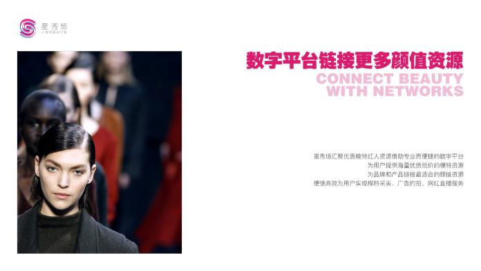 除此之外,星秀场平台还从线上服务平台延展至线下,联合实体商业打造“颜值市集”、“颜值导购”“颜值直播”等多样的传播模式。在为线下实体商家智造内容话题的同时,借助颜值美女自带的社群及社交媒介获取线上传播流量。 据周正介绍,星秀场服务平台的下一个阶段是向20—40岁独立女性社群靠拢,为颜值模特在生涯结束后连接更多的创业平台及创业机会,解决模特在30岁后的转型和创业疼点。