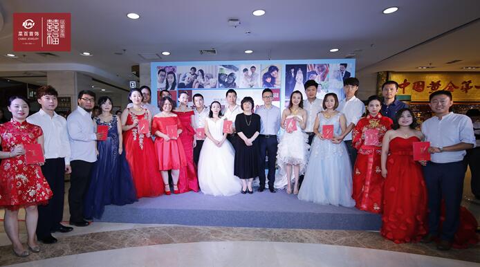 金婚老人57年共度风雨、一路走来的携手,与现场十对新人的聚首,如同开启了一幕神奇的时空隧道,白首夫妻曾经也是青春飞扬的新婚爱侣,年轻的爱人也终将在岁月的洗礼下白发苍苍,唯一不变的是一生的约定和诚挚的爱情。莫宝莹和徐慧远老人向我们诠释了彼此包容、相敬如宾、相濡以沫的爱情真谛,这也正是菜百与囍福一直以来倾注在婚庆产品中的价值观相契合。 菜百囍福强强联合,创新婚庆珠宝市场 面临经济新常态,黄金珠宝企业如何能在压力中前行是菜百及囍福一直以来思考的重点:为应对品牌多样化、品类多元化的市场变化,以及90后、95后等新一代消费群体的迅速壮大,菜百公司作为黄金珠宝行业内的标杆企业,率先垂范,携手囍福结婚金饰寻找更注重工艺与文化内涵的产品,让行业和消费者在市场转变和转型的过程中看到“精耕细作”的重要性,开辟囍福金饰的新市场。