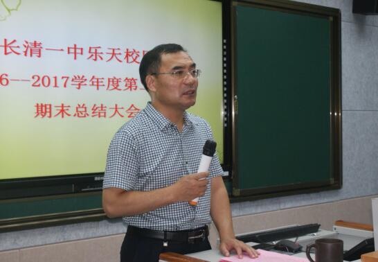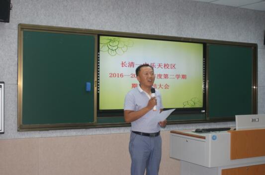 7月6日下午,长清一中乐天校区(非韩国乐天玛特)在新录播室召开全体教师会。 会议首先由胡连波、郭其泉两位主任做工作述职报告。2016年,根据学校工作需要,胡连波、郭其泉两位老师走上学校领导岗位,分别担任九年级和八年级级部主任。一年来,胡主任和郭主任团结、带领两个级部的教师用实际行动向学校交上一份满意的答卷。两位主任详细的汇报了自己一年来在级部管理方面所做的工作,教师们用热烈的掌声表达对两位主任工作的肯定。