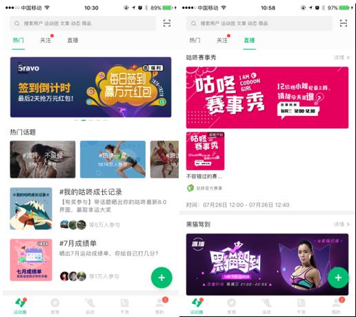 据了解,咕咚8.0新增了很多独家的运动干货知识,其中多达10余项训练计划帮助用户建立一个系统认识、良性选择、循序渐进、提升身体承受能力,加深运动锻炼的过程,为此,咕咚还引入了超过300位教练和健身达人直播开课,充分释放KOL的UGC作用,用户可以通过高频次的互动,提升对运动的认知和效率。 咕咚目前有超过9000万的用户,其中不乏在业余和专业赛事活动中得到大众认可的KOL,通过干货和运动圈两大板块的集中呈现,可以充分释放这些KOL的知识分享能力,帮助更多的入门运动爱好者走过“菜鸟”阶段。