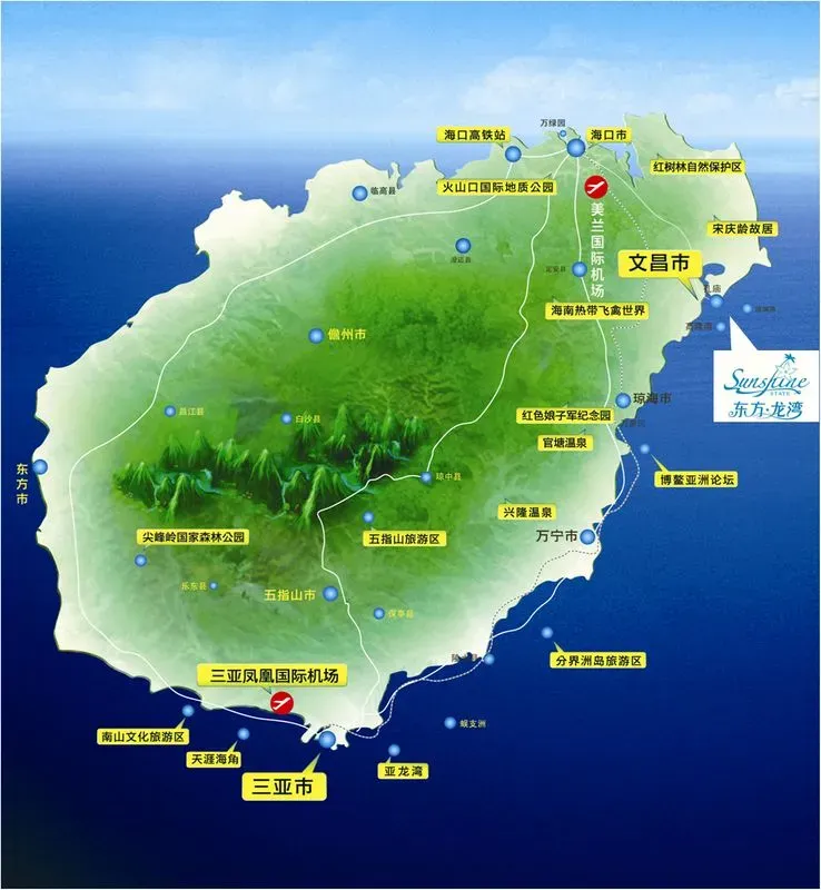 交通图 交通状况:搭乘前往文昌清澜高隆湾专线的公交车文昌市政府站下;东方龙湾距离市中心15公里;距海口美兰机场50公里,海文高速可直达项目。距海口市65公里约。铺前跨大桥2017.10通车,清澜跨海大桥已经通车,届时海南滨海旅游快线上线,便利共享东线各路旅游景点。