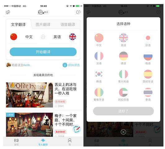 笔者使用了一下真人翻译App,可以随时沟通语言问题,结束后可评价并收藏译员,非常直观方便。 |